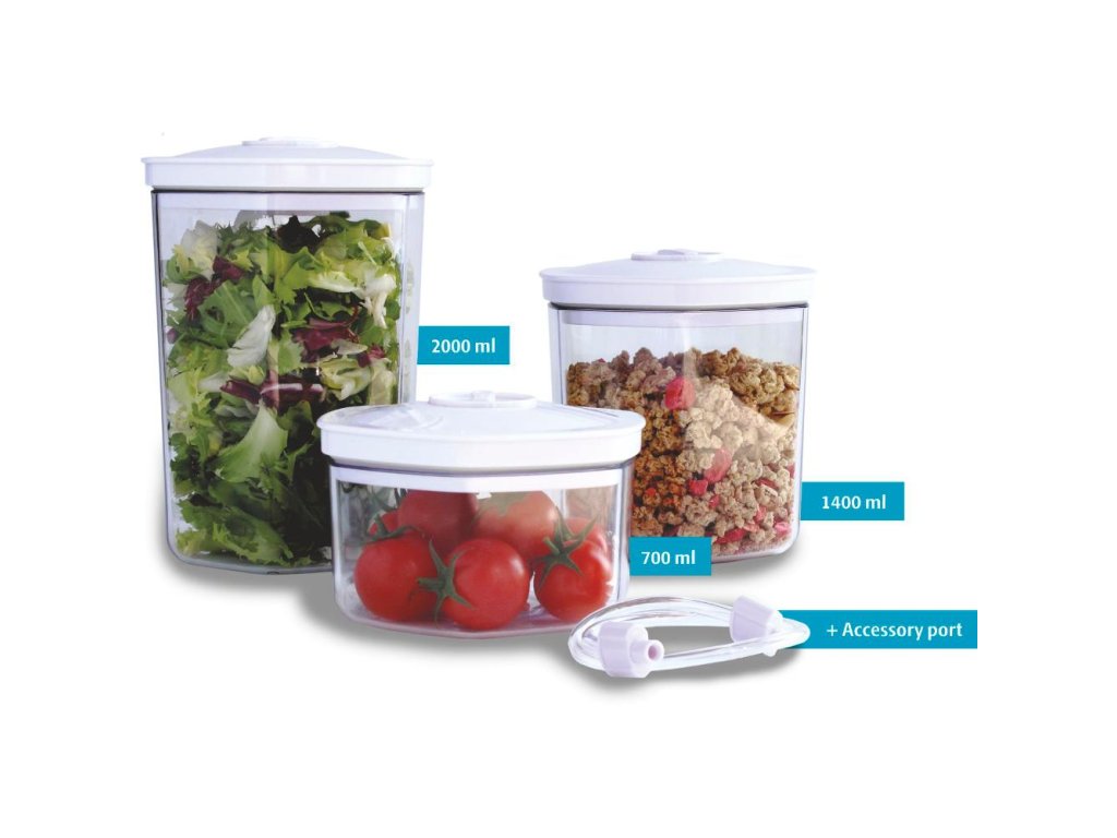 Vhodné pro vakuové uložení potravin např: kávy, sušenek, mouky, rýže, oříšků, cereálií, ovoce, zeleniny, salátů, polévek a omáček, bylinek, hub atd.